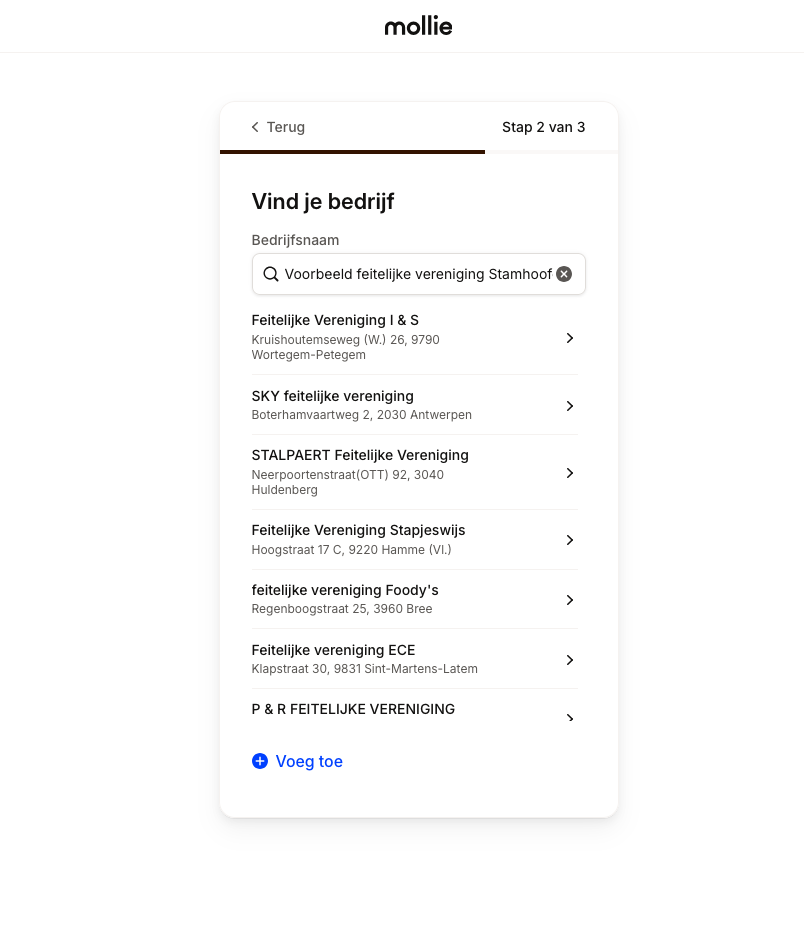 Heb je geen VZW, of wil je inkomsten via Stamhoofd verzamelen zonder dat dit via je VZW mag verlopen, dan moet je bij Mollie aansluiten als feitelijke vereniging.