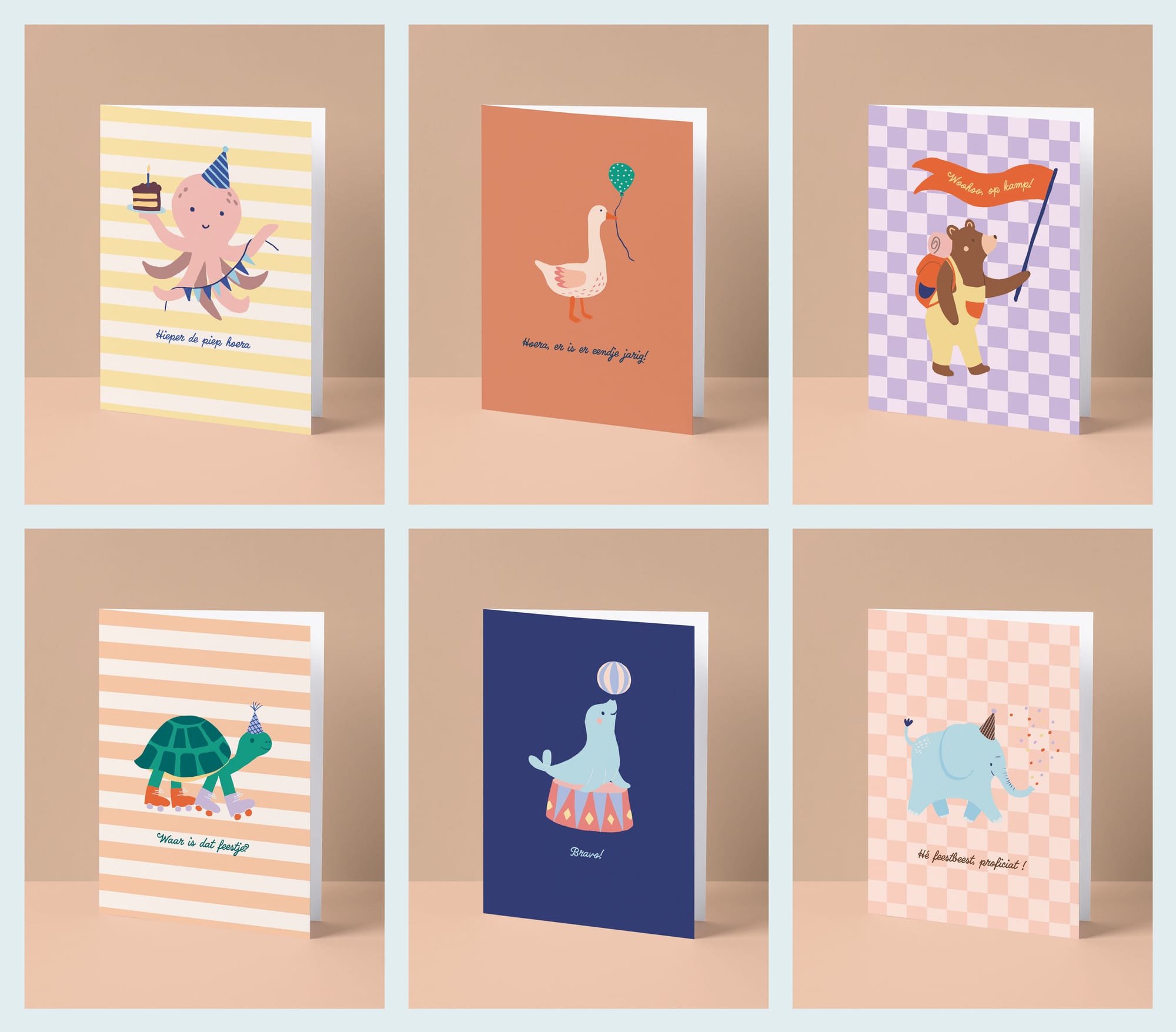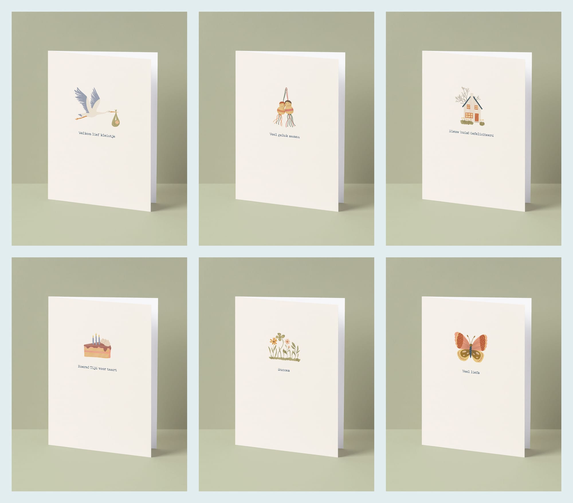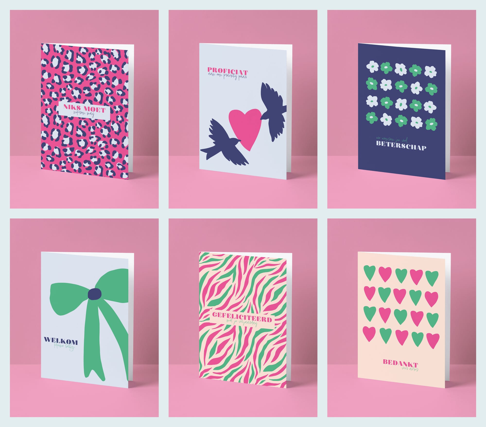 De eerste creatie was meteen een schot in de roos: de 50 Moments-in-a-box, een doos met vijftig wenskaarten voor allerlei gelegenheden. “In het begin was dit een klein zijprojectje naast mijn freelance opdrachten,” zegt Charlène. “Maar in 2020 kwam het kantelpunt. Door de coronapandemie vielen veel opdrachten stil, terwijl de wenskaartenmarkt net boomde. Ik besloot toen om me volledig op Hello August te focussen.”
